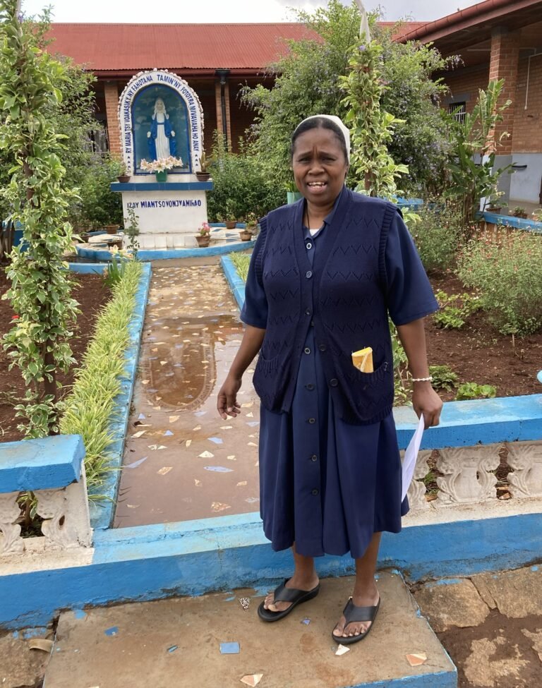 Sœur Marguerite est la responsable de la Communauté des Filles de la Charité à Antsirabe. Elle est également Conseillère nationale des Jeunesses mariales, en compagnie d’un prêtre et d’un laïc. Elle est souvent en déplacement, mais ses Consœurs s’occupent magnifiquement des 22 handicapés opérés le plus souvent des pieds-bots. Elle sensibilise les jeunes à défendre la justice, à dénoncer ce grand fléau, la corruption. Les frais de déplacements sont chers et les moyens financiers très faibles ; des sponsors viendraient-ils à sa rescousse ?